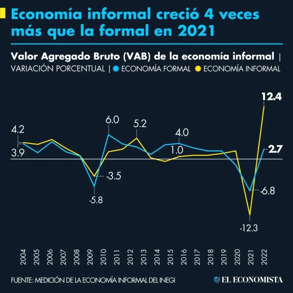 PD: la imagen de la entrada, tiene como fuente al semanario El Economista, y muestra la evolución de la economía informal en Méjico desde 2004 hasta 2022. En Argentina se estima que el 45% de los trabajadores son informales.