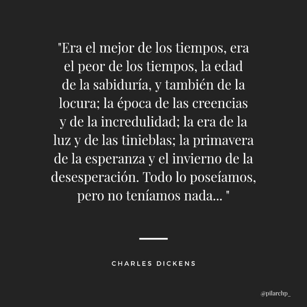 En esta nota, Carlos Fara utiliza la expresión de la imagen de la entrada y dice que «este es el párrafo inicial de la obra de Dickens Historia de dos ciudades. Se desarrolla hacia fines del siglo XVIII, en la época de la Revolución francesa. Una es Londres, donde reina la paz y el orden, mientras que la otra es París, signada por el caos y la agitación. Pues si Dickens viviera hoy en la Argentina, escribiría Historia de dos países, porque eso es lo que está sucediendo». Luego hace un paralelo con la realidad argentina actual.